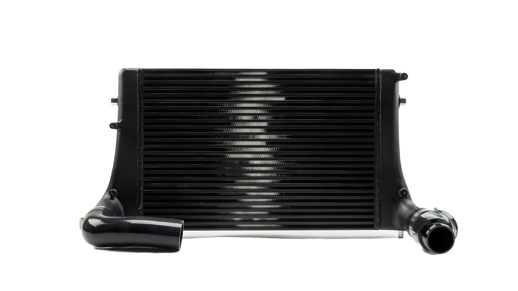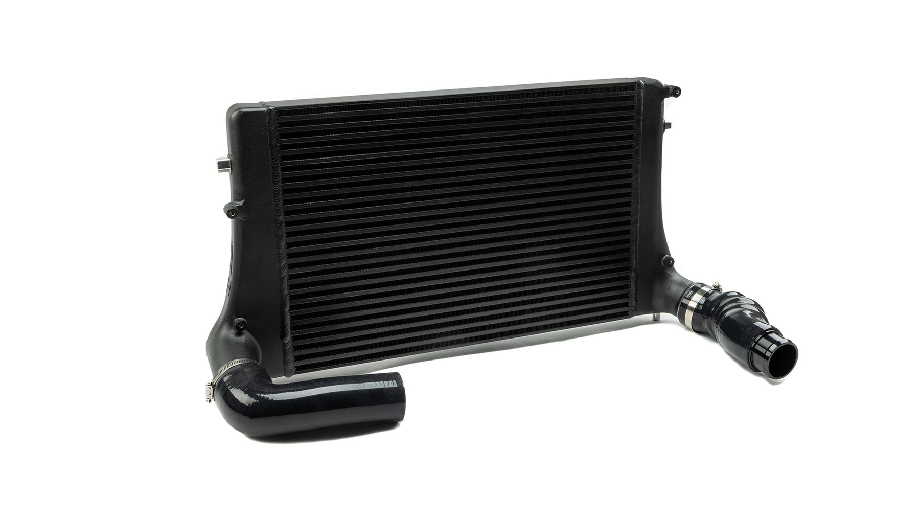 The IE MK5/MK6 intercooler comes complete with high quality, 5 ply reinforced silicone hoses, which allow connection directly to the factory outlet and throttle pipes to many MK5 & MK6 2.0T engines. 2013.5+ MK6 Jetta & GLI with Gen 3 TSI requires the IE Gen 3 MK6 Charge Pipe Kit part number IETPCC12. Important note: many Audi TSI models may require some some custom work to lengthen the passenger side inlet hose.
