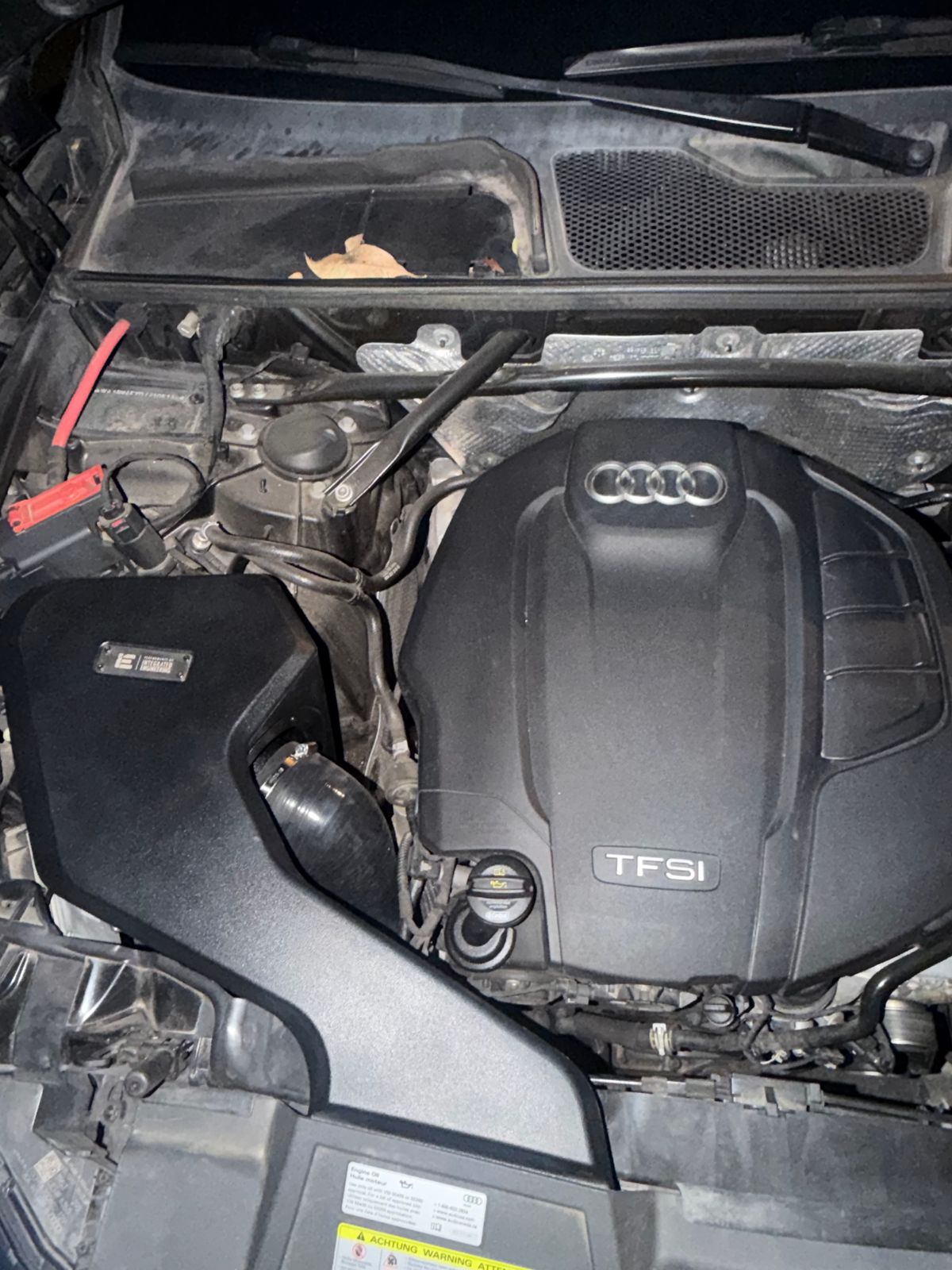 The factory airbox is designed to mute all engine and turbo sounds. When upgrading to an IE intake system, you will instantly become addicted to the new turbocharger spool, engine throttle, and diverter valve symphony under the hood. Your Q5 will pull harder and make you smile with with the new refined and exiciting engine sound.