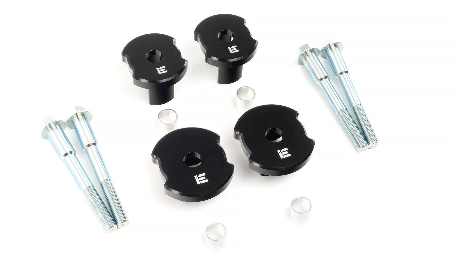 As a proper all-in-one solution, the included Dead Set Kit also fixes the factory flaw of oversized subframe bolt holes. These gaps allow unwanted movement and misalignment during hard driving. iE’s precision-machined aluminum collars lock the subframe in place by perfectly centering each bolt and creating a secure, press-fit connection.