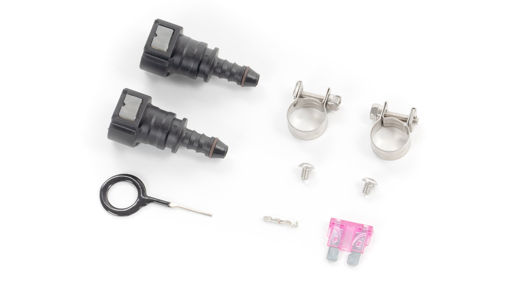 This harness kit is fully assembled to the proper lengths. It includes everything needed for a clean, factory-like installation. You’ll want to utilize the expertise of a pro for disconnecting and cutting the factory soft fuel lines.